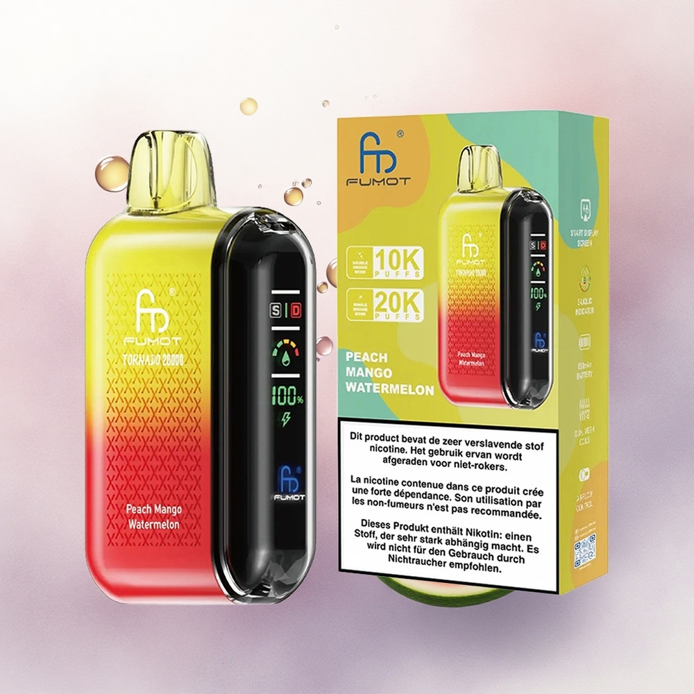 Fumot Tornado 20000 Puffs Peach Mango Watermelon Dual Mesh Coil 20ml 850mAh